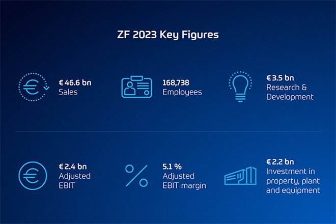 2023年,采埃孚中國市場銷售額達81億歐元(2022年為77億歐元)。