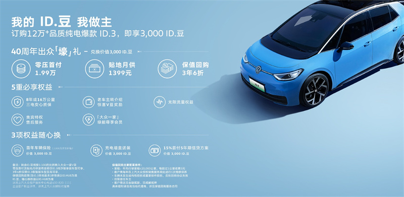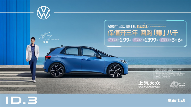 自3月3日ID.3推出40周年出眾“壕”禮以來,吸引了許多剛步入職場的年輕消費人群,到店咨詢量顯著上升。零壓首付、貼地月供、3年保值回購的超值金融組合方案,大大降低了用戶的擁車成本。而車輛只要符合年均行駛里程不超過20,000公里,沒有遭受結構性損傷或重要部件損壞等合理條件,就能達成至高3年6折的保值回購。這是品牌對產品保值率的底氣,更能讓消費者安心。