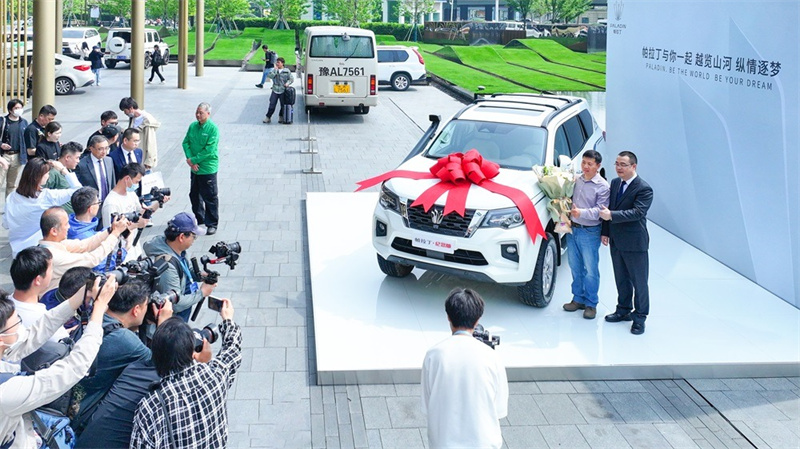 活動現(xiàn)場,鄭州日產(chǎn)為帕拉丁紀(jì)念版首位車主舉行交付儀式。