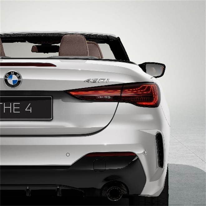 新BMW 4系敞篷轎跑車自我主張獨具一格,彰顯出敞篷轎跑車的獨特駕駛樂趣。其帶有頂蓋弧拱的軟頂設計,既擁有可收納式硬頂的穩固性,又具備布料敞篷的經典美感;當時速在50 km/h以內時,軟頂僅需18秒即可打開/關閉。