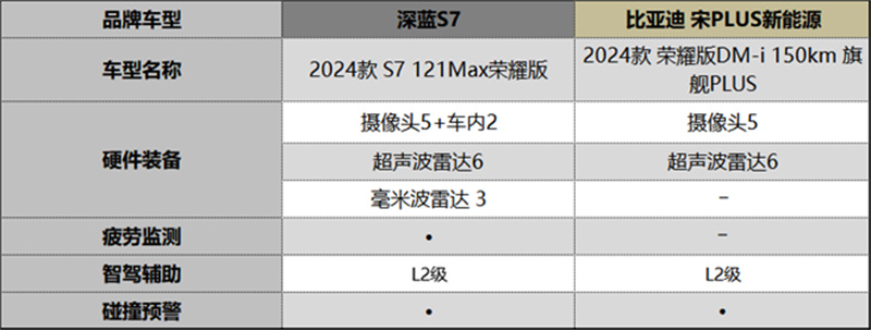 在智能駕駛輔助系統(tǒng)上,兩款車(chē)型均達(dá)到了L2級(jí)水平,但深藍(lán)S7在硬件配置上更為出色。它配備了比宋PLUS DM-i多出的兩個(gè)車(chē)內(nèi)攝像頭和3顆毫米波雷達(dá),這些先進(jìn)的感知設(shè)備能夠更全面、精準(zhǔn)地捕捉車(chē)輛周?chē)h(huán)境信息,從而提升智能駕駛的準(zhǔn)確性和安全性。但深藍(lán)S7還具備宋PLUS DM-i所沒(méi)有的疲勞監(jiān)測(cè)功能。這一功能能夠?qū)崟r(shí)監(jiān)測(cè)駕駛員的駕駛狀態(tài),一旦發(fā)現(xiàn)疲勞駕駛的跡象,便會(huì)及時(shí)發(fā)出警報(bào),提醒駕駛員休息或采取相應(yīng)措施,確保行車(chē)安全。因此,在智能駕駛方面,深藍(lán)S7的配置更加豐富,安全性也更高,為駕駛者提供了更為全面、可靠的駕駛輔助。