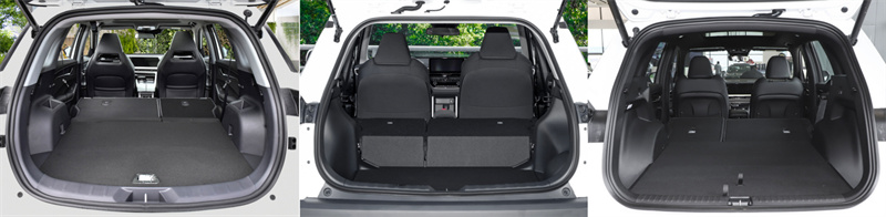 充足的空間不僅能讓用戶坐得舒適,也能帶全行李讓出行更輕松、更從容。整體而言,第三代CS75PLUS冠軍版與星越L長風版的空間表現都優于鋒蘭達雙擎領先版。尤其在后備箱空間方面,第三代CS75PLUS冠軍版的后備箱容積達到620L,星越L長風版的為562L,二者相差近60L,可以多放一個20寸行李箱。相比之下,鋒蘭達雙擎領先版只有427L,是三款中空間最小的。值得一提的是,三款產品都支持第二排座椅放倒以拓展容積,比如第三代CS75PLUS冠軍版放倒第二排座椅后,容積能拓展至1450L,給到用戶一個超大的裝載空間。這在長途旅行時非常實用,讓用戶不用再為行李的取舍而糾結。鋒蘭達雙擎領先版在這一方面相對差強人意,畢竟其他兩款后排放倒都可達到一個純平的狀態,而鋒蘭達雙擎領先版后排放倒會出現一個坎,無法做到純平。