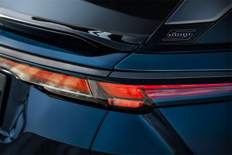 引擎蓋與擋風玻璃的斜度和弧度經過精心設計,旨在打造更加出色的空氣動力學外觀,確保最大限度地提升車輛在高速行駛時的性能與效能。傾斜的車頂輪廓線逐漸隱于懸臂式后擾流板之下,勾勒出Wagoneer車型標志性的車身造型,彰顯實用功能與美學設計的諧美融合。