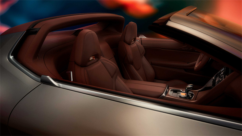 內飾中的真皮座椅采用了布洛克式制作工藝和設計風格。座椅表面呈紅棕色調,營造出和諧的色彩搭配和更加寬敞的車內空間,充分彰顯豪華品質。水晶質感的內飾組件巧妙地點綴在駕駛艙里,為整體設計營造璀璨氛圍。