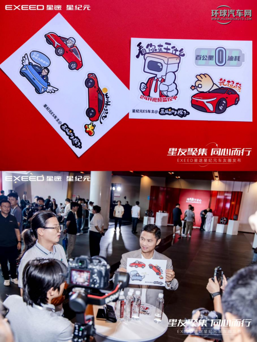 改裝圈代表胡鑫與滕陳為現場用戶帶來了6款原創的漫畫車貼,以奇瑞集團領導與星紀元ES 2025款為創作靈感,吸引眾多車友目光。滕陳還表示后續會繼續創作更多有趣的車貼上架星紀元APP,期待改裝圈未來的精彩創作。