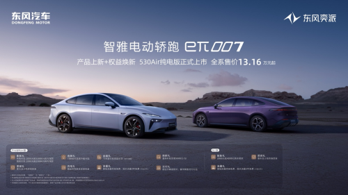eπ007再添新成員!8月30日,主流科技電動品牌東風奕派,在成都車展火熱發布eπ007 530Air純電版,官方指導價13.16萬元,純電、增程同價起售,助力用戶開啟精彩生活。