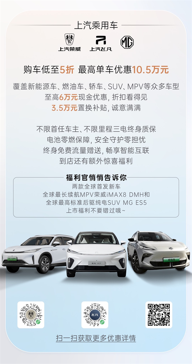 13個品牌百余款車,陣容龐大。此次活動,上汽集合旗下智己、榮威、飛凡、MG、大通、五菱、寶駿、奧迪、大眾、斯柯達、凱迪拉克、別克、雪佛蘭13個整車品牌的百余款車型,以創(chuàng)新產(chǎn)品、優(yōu)質(zhì)服務、貼心價格回饋廣大消費者,積極響應上海市“以舊換新、不限滬牌”等全新促消費政策,推動汽車消費持續(xù)升溫。
