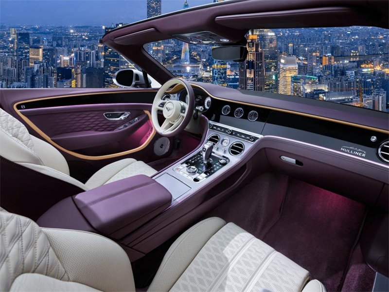 進入座艙,MULLINER的三色內飾配色方案、手工縫制的座椅以及獨特的MULLINER刺繡,無不透露出匠心獨運。新歐陸GT敞篷MULLINER版的新縫線工藝甚至延伸至敞篷收納蓋板,展現出別樣的精致。此外,健康座椅、舒逸坐姿功能以及座椅溫度自動調節等配置,讓駕乘者在享受奢華的同時,也能感受到賓利的關懷與貼心。