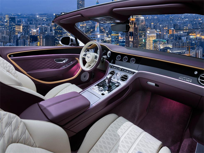 進入座艙,你仿佛踏入了一個由色彩與質感交織的夢幻世界。MULLINER專屬定制的三色內飾配色方案,手工縫制的座椅,以及那獨特的MULLINER刺繡和菱形孔隙圖案,無一不在訴說著賓利的奢華傳奇。特別是新歐陸GT敞篷MULLINER版,當七段式面料車頂緩緩降下,那延伸至敞篷收納蓋板的縫線工藝,更是讓人贊嘆不已。