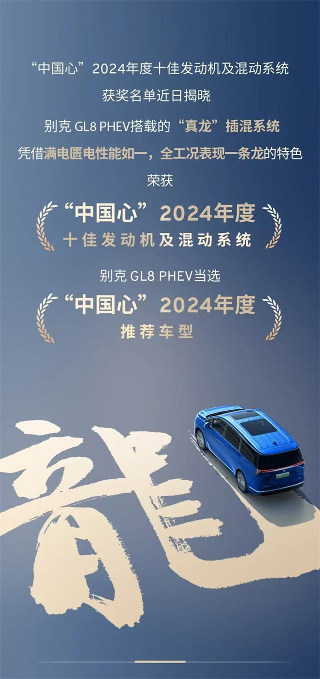 在具體車型方面,別克GL8陸尊PHEV在第三方極限實測中續航及能耗表現出色,搭載的“真龍”插混系統憑借“滿電匱電性能如一,全工況表現一條龍”的特色榮獲了“中國心”2024年度十佳發動機及混動系統,同時,別克GL8陸尊PHEV也當選了“中國心”2024年度推薦車型。