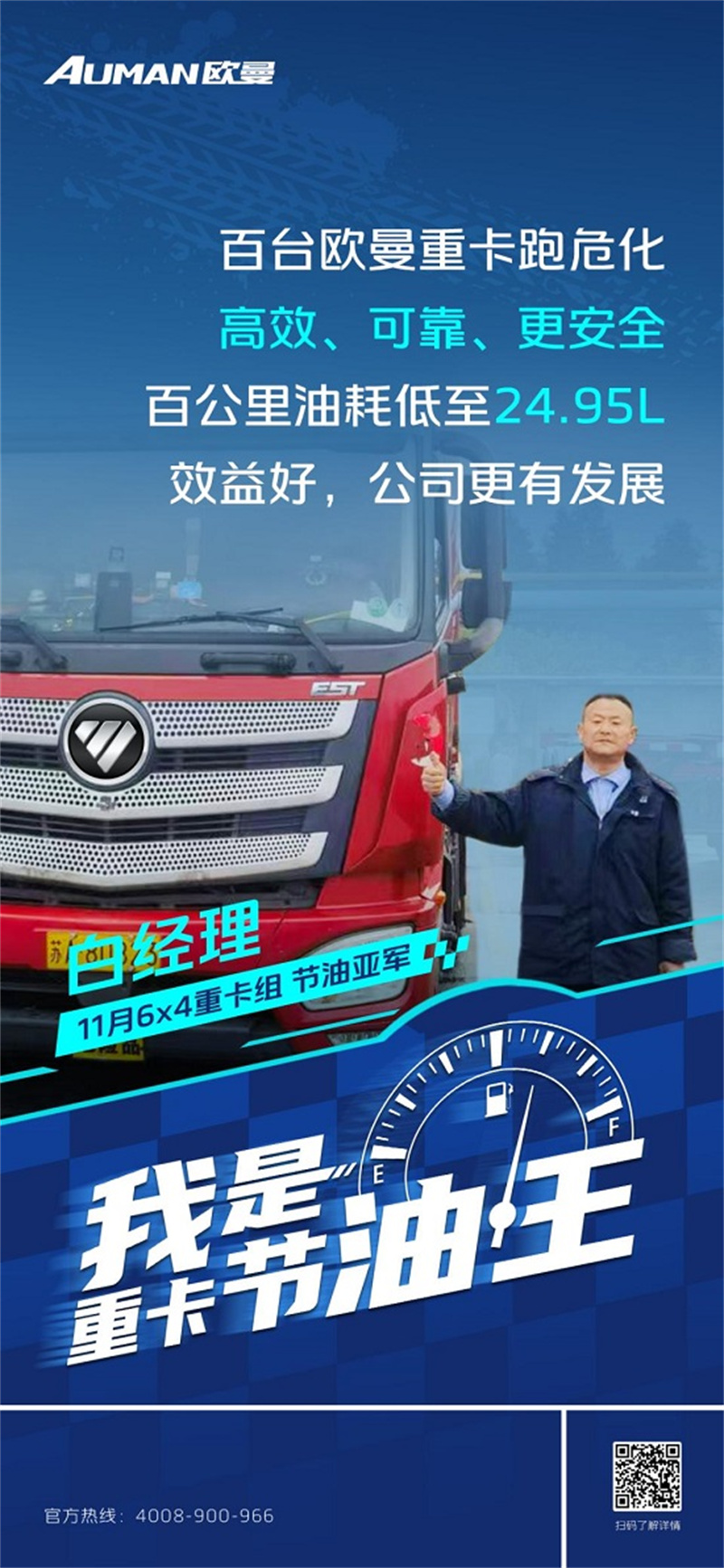 在成千上萬的物流企業中,有這樣一位傳奇人物——白經理,他憑借對物流行業的深刻洞察和對運輸工具的精準選擇,打造了一支由歐曼重卡組成的強大的危化品運輸車隊,書寫著一個個精彩故事。尤其是在最近歐曼舉辦的2024歐曼節油巔峰挑戰賽中,白經理旗下的歐曼GTL重卡以百公里24.95L的油耗榮獲“我是重卡節油王”十一月份6x4車型亞軍,進一步展現了歐曼GTL重卡卓越的節油性能!