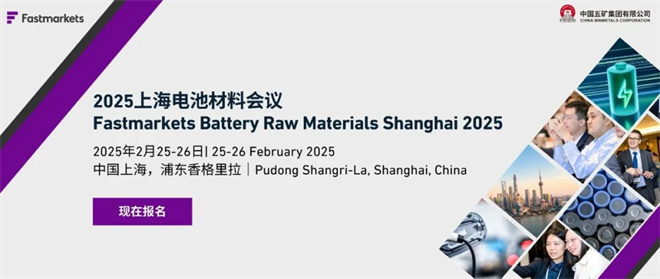 Fastmarkets將于2025年2月25-26日重返中國上海,攜手中國五礦集團共同在浦東香格里拉大酒店舉辦電池材料會議。屆時,會議將邀請國內外電池產業鏈專家學者、頭部企業代表和政府官員共同探討動力電池行業時下熱點與市場前景,分享行業最前沿技術、創新成果,推動動力電池行業協同發展,完善并提升產業鏈。