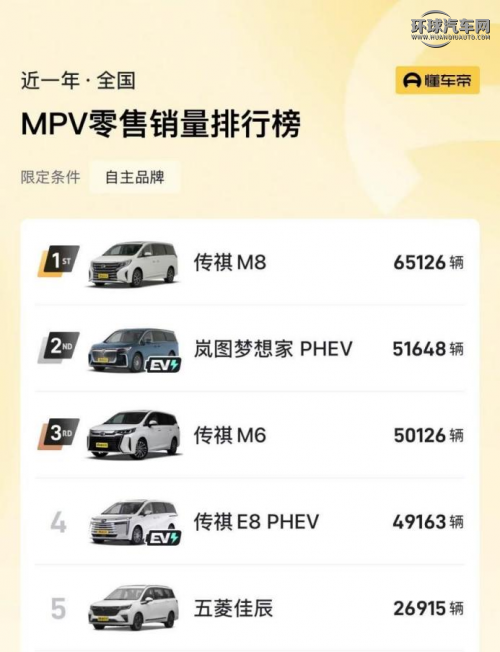 【圖:2024年度中國品牌MPV銷量排行榜】