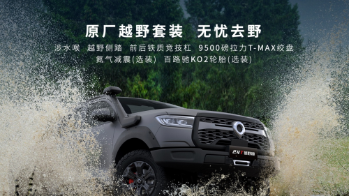 激情展現自我,正視每一種現狀,“她”的自信,正如2.4T越野炮的底氣。2.4T越野炮天生強大,不論是高原攀爬,還是面對高溫、嚴寒極端環境考驗,都能與你并肩作戰。高原不高反,海拔4700米高原仍可輸出400N·m最大扭矩,高原穿越無壓力;高溫不過熱,專項配備850W高性能散熱風扇,匹配行業首創越野熱管理模式,炎炎夏日即使大負載長途穿越,也無需擔心;高寒更可靠,采用同級領先的AGM大容量蓄電池,容量高達92Ah,電容穩定性、低溫可靠性更高,即使面對北方寒冬也能“一把著車”。