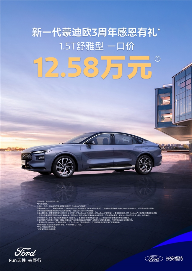 同時,蒙迪歐2.0T全系車型均可享受至高32888元周年感恩禮!