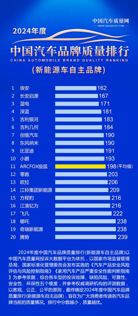 此次藍(lán)電汽車榮登中國汽車質(zhì)量網(wǎng)2024年度新能源“中國汽車品牌質(zhì)量排行榜”前三甲,不僅證實了藍(lán)電在質(zhì)量、可靠性以及用戶滿意度方面的卓越表現(xiàn),更凸顯了賽力斯質(zhì)量管理體系的高標(biāo)準(zhǔn)。未來,藍(lán)電汽車將始終秉持“一切為了用戶”的理念,不斷提升產(chǎn)品質(zhì)量和服務(wù)水平,致力于為用戶帶來更高品質(zhì)的用車體驗,為中國家庭提供提供值得信賴的購車之選。
