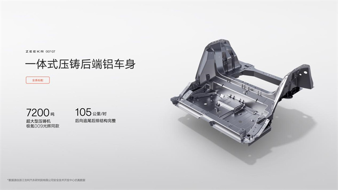 極氪不滿足于應試安全,面對實際駕乘中有風險的工況,法規沒要求,極氪有要求。以前向碰撞為例,極氪007GT通過50千米/小時正面中心柱碰測試,比業界標準嚴苛一倍以上。在后向碰撞上,極氪007GT標配一體式壓鑄后端鋁車身,極大提升了追尾碰撞的安全性。被動安全方面,極氪007GT以50+項極氪安全標準打造720°安全盔甲,為駕乘人員提供全方位安全保護。