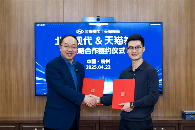 4月22日,北京現代與天貓養車在杭州舉行戰略合作簽約儀式,雙方宣布將聯合打造覆蓋全國的智能汽車服務體系。北京現代常任副總經理李雙雙、天貓養車總經理蔡永志等雙方代表共同出席,標志著此次跨界合作正式啟動。根據協議,北京現代將授權天貓養車在現有售后網絡未覆蓋的區域開展快修快保等服務,首批設立5家授權門店,涵蓋原廠配件供應、車輛保修及基礎維修保養等核心業務。合作中,北京現代以“原廠服務標準”確保技術規范與配件質量,天貓養車則通過互聯網技術優化服務流程,例如智能派單、線上預約及數字化管理,預計可提升服務效率,開啟全新的優質服務。