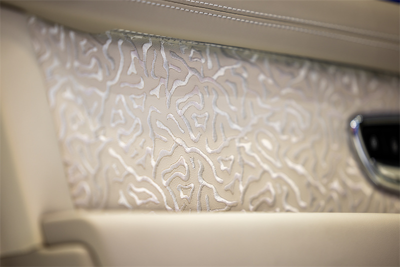 觸覺與視覺上的精妙設計還包括氛圍燈、車門內飾與座椅上的舒適風格菱形絎縫、頭枕處的“Azure”刺繡標識、天然啞光直紋胡桃木飾面,以及旅行配置、舒適配置及氛圍燈套件。照明式迎賓踏板帶有“Azure”字樣,成就點睛之筆。