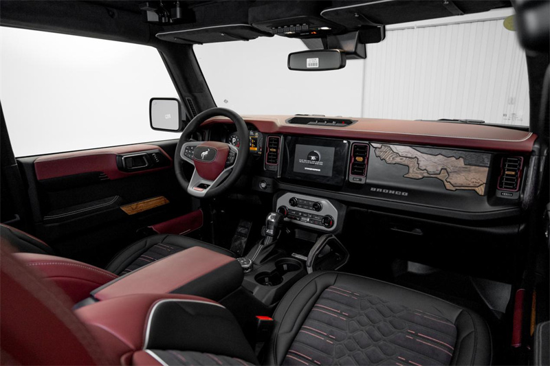 內飾設計靈感來源于BAJA賽事路線地圖和冠軍車轍痕跡,引入獨特內飾紋樣元素。材質與工藝方面,克蒂怪獸SV7使用定制NAPPA工藝皮和高彈力海綿深度包覆,撞色法式雙縫線縫紉工藝,進口頂級麂皮絨面料覆蓋頂棚等多處,原車裸露塑料內飾噴覆手感漆,內部多處點綴金屬標識。座椅設計采用人體工程學造型雙硬度高彈力海綿,提供最佳支撐和包裹性。顏色搭配豐富多樣,包括液態金屬龍血紅、蒂芙尼藍、火山黑、沙丘白、雪域白、巖崖灰、怒濤藍、冰莓粉、巖砂黑武士等。