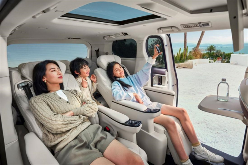 全新高山打破MPV“方正呆板”的固有印象,采用飛瀑式前臉設計,融入東方山水美學元素,將自然意境與車身線條完美融合。深空黑、墨夜綠等五種高級配色,加上用戶共創色彩方案,滿足多樣化審美需求。噴涂工藝升級后,車漆抗刮性能提升20%,讓車輛始終保持精致外觀,無論是接送孩子還是家庭出游,都能“有里有面”。