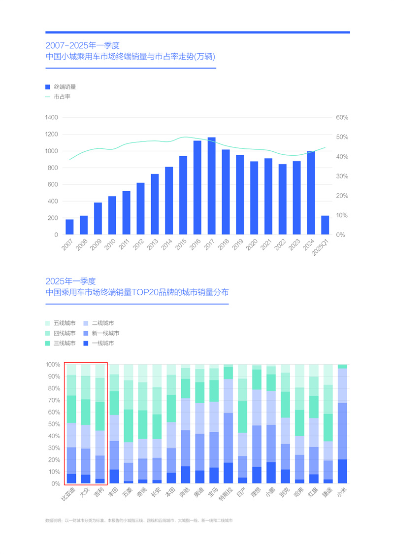 2023-2024年,小城車(chē)市快速崛起,市占率隨之提升,新跡象應(yīng)引起車(chē)企的高度關(guān)注,尤其是吉利、比亞迪等主流車(chē)企
