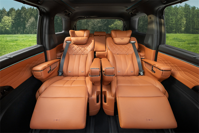 別的MPV卷空間、卷沙發,傳祺直接玩起了「文化降維」。車頭「五縱七橫」麒麟格柵,靈感來自故宮瑞獸,遠看像穿了身「龍鱗鎧甲」,比GL8的「商務老干部風」順眼多了。坐進車內更絕:山水絎縫的Nappa真皮座椅,摸起來像擼貓一樣順滑;千年粵繡非遺刺繡藏在門板里,陽光一照還會「泛金光」,連香氛系統都有桂花香、中藥香這種「中式特調」,妥妥把「移動東方美學館」開上路。