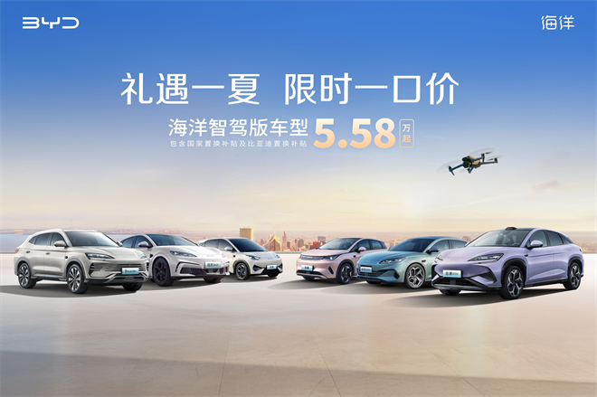 為回饋廣大用戶的支持與厚愛,比亞迪海洋網推出“禮遇一夏,限時一口價”活動,即日起至6月30日,購買海鷗智駕版、海豚智駕版、宋PLUS智駕版、海豹06DM-i智駕版等10款智駕版車型,即可享受限時一口價的驚爆活動,其中海鷗智駕版限時一口價5.58萬,海豚智駕版限時一口價7.78萬,宋PLUS DM-i智駕版限時一口價9.98萬,宋PLUS EV智駕版限時一口價11.78萬,海豹06DM-i智駕版限時一口價7.68萬,以實際行動讓利消費者,助力更多用戶輕松解鎖高品質新能源出行生活。