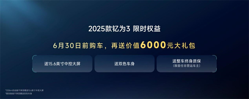 2025款釔為3通過“產品力+權益”雙驅動,成為A0級市場不可忽視的選擇。限時贈送的整車終身質保、中控大屏與雙色車身,疊加基礎權益后,綜合優惠價值超萬元。對于近期有購車計劃的消費者,建議在6月30日前鎖定權益,通過江淮釔為APP或線下經銷商試駕體驗,搶占超值福利窗口期。