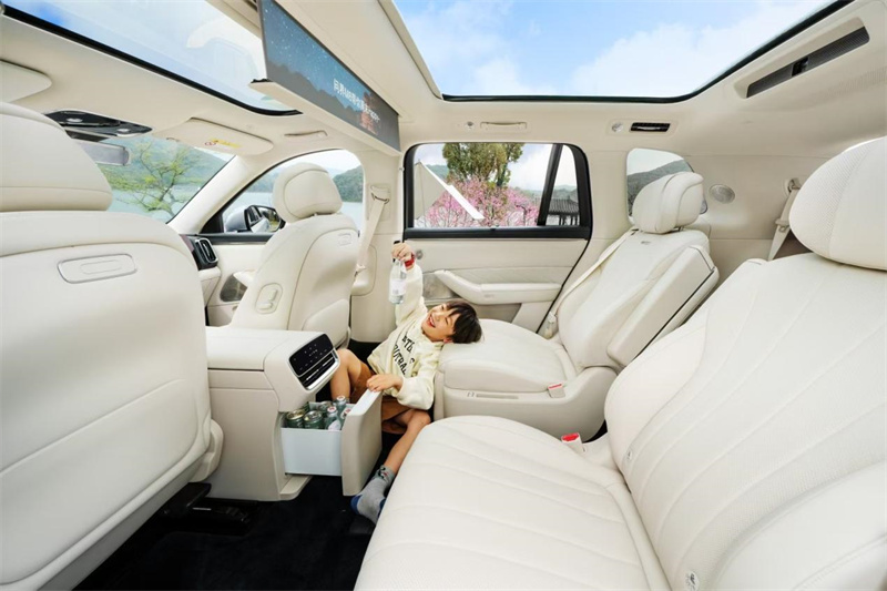 面對家庭用戶對空間的嚴苛需求,問界M8以68.6%的得房率重新定義了“移動的家”。并且,在保證后備箱573mm進深的同時,還能帶來前排935mm、二排900mm和三排840mm的大空間。也讓第三排告別了“小板凳”的尷尬情況。