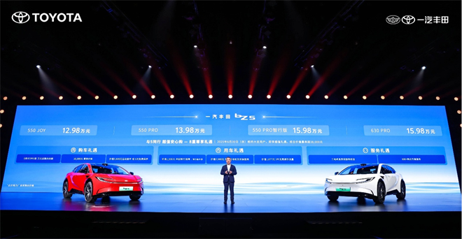 6月10日,萬眾期待的“豐田超感時空艙”全新bZ5正式上市;新車首推550 JOY版、550 PRO版、550 PRO智行版、630 PRO版共計4個版本,官方售價分別為12.98萬元、13.98萬元、15.98萬元、15.98萬元;并提供綜合價值最高達3.8萬元的8重大禮;上市至今,訂單火爆,展露了爆款的潛質。