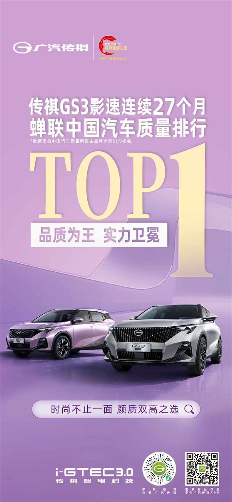 同時,根據(jù)中國汽車流通協(xié)會和精真估發(fā)布的“10萬以內(nèi)小型SUV保值率榜”,傳祺GS3影速以超高保值率位居第一,首年保值率顯著高于行業(yè)均值。保值率是車輛品質(zhì)可靠、市場認可度高的有力證明。選擇保值率高的車,就是為未來資產(chǎn)價值和用車體驗購買了一份可靠保障。高銷量、高質(zhì)量、高保值,傳祺GS3影速讓用戶可以買得放心,用得省心。