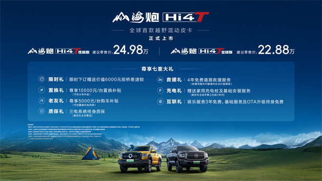 值得一提的是,繼山海炮Hi4-T澳洲上市后,該車也于6月23日正式登陸國(guó)內(nèi)市場(chǎng)。與此同時(shí),山海炮2.4T全球版也同步登場(chǎng),兩款產(chǎn)品以“雙旗艦”姿態(tài),引領(lǐng)高端皮卡再進(jìn)階,刷新行業(yè)新高度,為用戶帶來(lái)更強(qiáng)動(dòng)力、更全場(chǎng)景、安全可靠的標(biāo)桿級(jí)用車體驗(yàn)。目前,山海炮已構(gòu)建起Hi4-T超混、HEV混動(dòng)、3.0T汽油、2.4T柴油的全動(dòng)力產(chǎn)品矩陣,滿足全球用戶的個(gè)性選擇與極致追求。