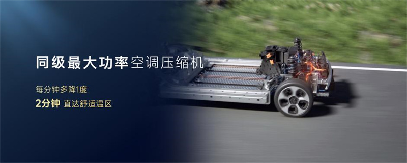 這主要得益于電動壓縮機(400V 33cc)的應用。它不僅擁有高達2.45的能效COP,高效穩定,能夠大幅提高熱管理效率,而且采用輕量化、小尺寸的設計,助力整車更進一步減少整車重量。