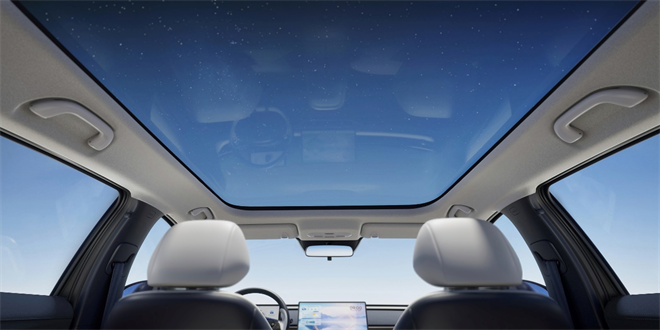 空間大,也得有好視野。從內飾圖來看,極狐T1配備了全景大天幕,在A0級車里裝這么大面積的,同級基本沒見過。從圖上看,這塊天幕幾乎占了大半個車頂,按著車的長寬算一下,得有2㎡以上,坐在車內抬頭看云卷云舒、星辰滿天,通透感想想就覺得美好。夏天怕“燙頭”的小伙伴也不必擔心,極狐T1把電動遮陽簾也安排好了,物理防曬更安心。