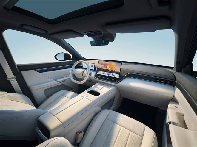 內(nèi)飾設(shè)計(jì)亦不失格調(diào),車(chē)內(nèi)觸手可及之處,面料全面升級(jí)為云感親肌超軟材質(zhì),覆蓋面積達(dá)到18平米,大幅提升了內(nèi)飾的質(zhì)感。細(xì)節(jié)之處更見(jiàn)巧思,經(jīng)過(guò)改良的50W無(wú)線(xiàn)充電面板,表面采用仿麂皮材質(zhì),有效防止滑落;電釋放內(nèi)門(mén)把手采用按鍵開(kāi)啟設(shè)計(jì),輕觸即開(kāi);主副駕標(biāo)配LED柔光美妝鏡,光線(xiàn)柔和不刺眼。一系列優(yōu)化從日常場(chǎng)景出發(fā),共同提升了用車(chē)的便利性與幸福感。