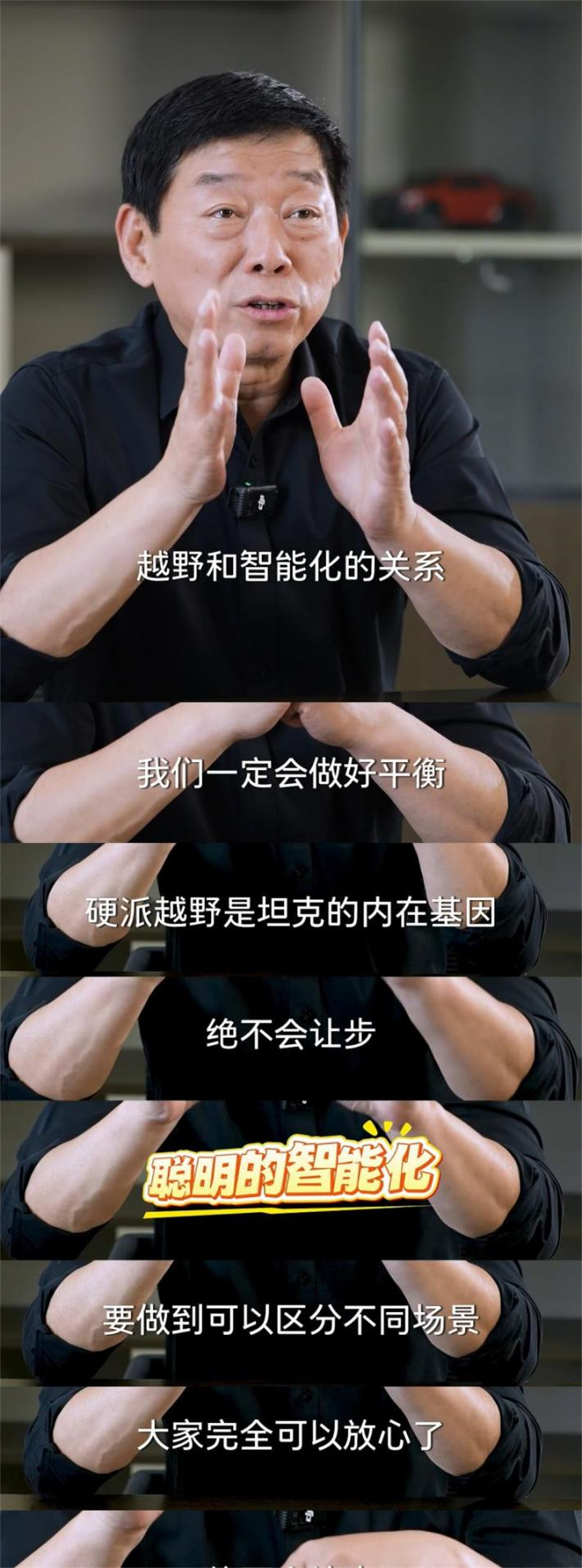 魏建軍進一步表示:“全新坦克500在越野和智能化的關系做好平衡,聰明的智能化要做到區分不同場景,硬派越野的基因絕不會讓步”。