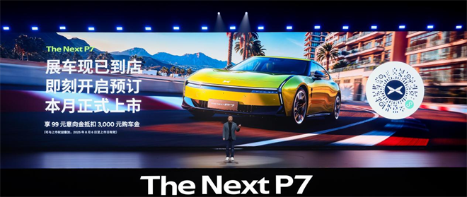 (2025年8月6日,北京)小鵬汽車在北京舉辦「THE NEXT 全新小鵬P7·中國首秀」發布會,新車正式亮相并開啟預訂,共發布3款車型,分別為702km長續航版、820km超長續航版、750km高性能版。2025年8月6日至全新小鵬P7上市日,預訂用戶可享99元意向金抵扣3000元購車金的權益,同時可與上市權益疊加使用。