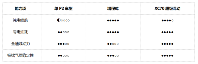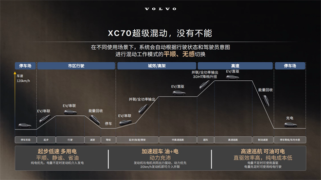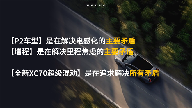 這大概是汽車圈最優雅、正向的技術diss了。“【P2車型】是在解決電感化的主要矛盾”,多少有點“半成品”的嫌疑:“【增程】是在解決里程焦慮的主要矛看”,明顯是位偏科生;而【全新XC70超級混動】是瑞士軍刀,“在追求解決所有矛盾”。