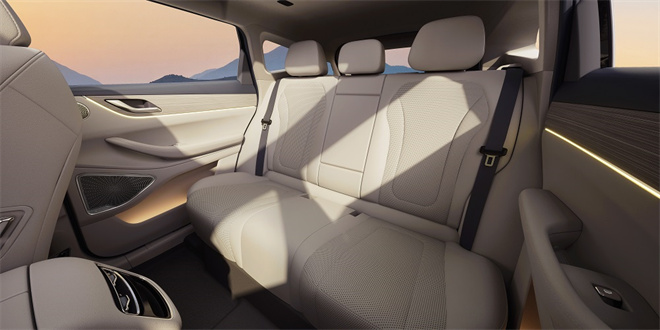 在后排座艙空間,其輪廓似璞玉般圓潤蘊藉,線條順著人體工學自然流轉,想必舒適度上是有保證的。依賴星途星紀元品牌的高端屬性,期待在材質用料上也會追求東方奢華質感。