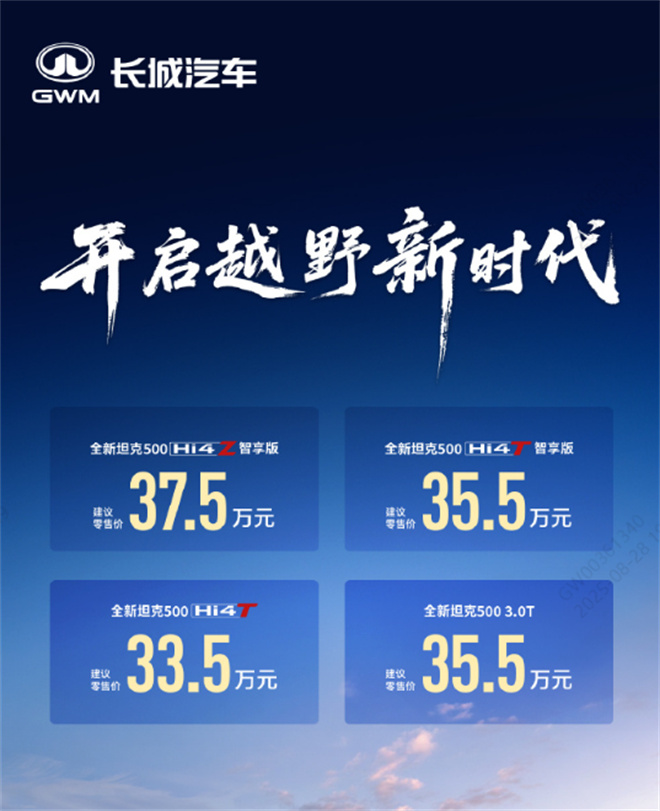 全新坦克500本次共推出Hi4-Z、Hi4-T智享版及Hi4-T與3.0T四個配置,售價33.5萬元起。上市期訂車權益豐厚:全新坦克500 Hi4-Z、Hi4-T智享版用戶可享價值41000元的配置權益及總價值38000元的5重限時豪禮,全新坦克500 3.0T也可享受總價值26000元的豪禮權益。