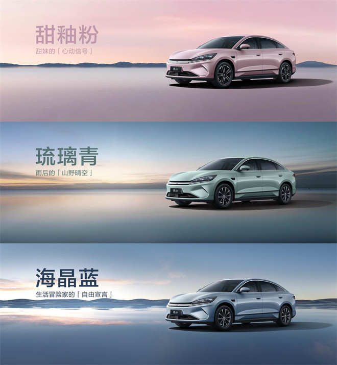 再加上紅色卡鉗+三款新配色(甜釉粉、琉璃青、海晶藍),比亞迪這是要把年輕人的審美和安全感雙雙拿捏啊。