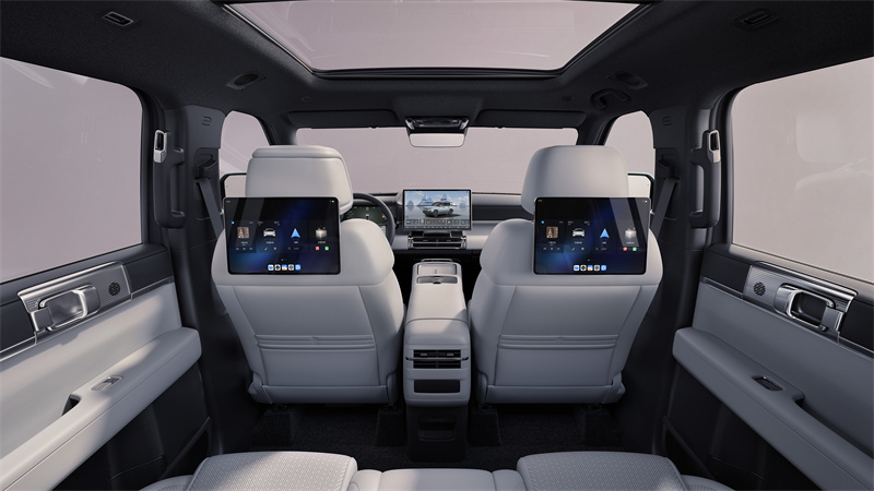 從外觀上看,鈦7方正寬大的造型確實有路虎車型的氣場,近5米的車長和近2米的車寬賦予它強大的視覺存在感。但這種硬派外觀并不以犧牲內部空間為代價,車內采用“高庭闊院”設計理念,實現了70.9%的超高得房率。