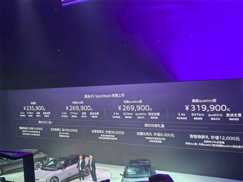 奧迪E5 Sportback以23.59-31.99萬元的預售價區間,徹底打破了豪華電動車的價格壁壘。這個價格策略讓豪華電動車的門檻進入了主流區間。