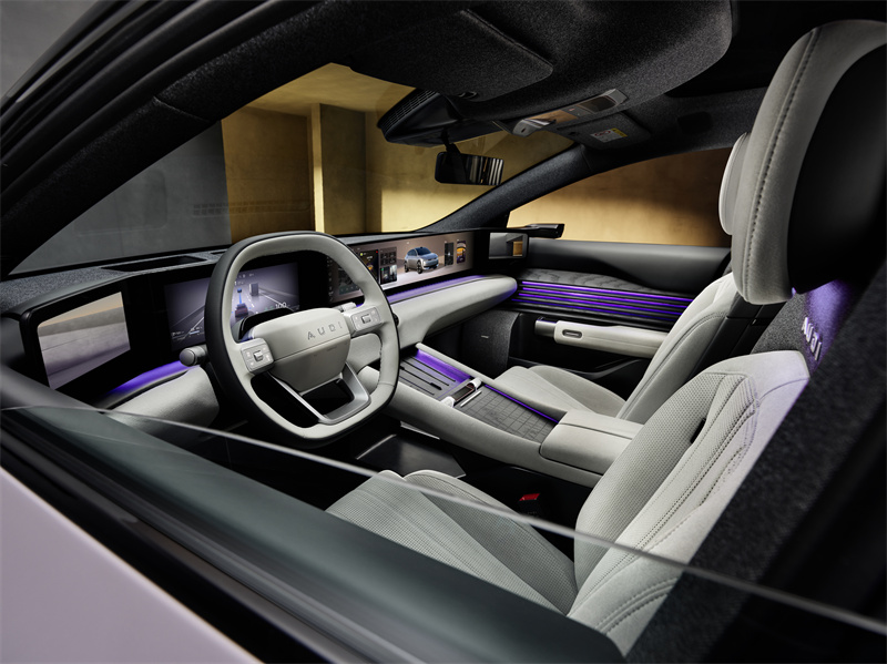 車輛外觀基本還原了AUDI E概念車的造型,采用封閉式中網,搭配環繞的點陣式LED日間行車燈帶,以及可發光的“AUDI”標識,營造出強烈的未來感。