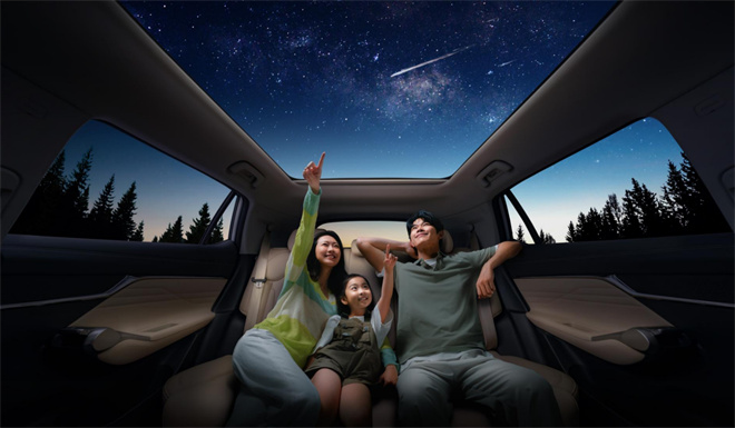 后排純平通道,橫向空間靈活性直接拉滿,大長腿隨便放,坐在后排中間的家人也全程“零抗議”。當車輛??吭?ldquo;宇宙地鎮很黑村”,夜幕低垂,銀河高懸,只需將后排座椅平整放倒,GS4 MAX瞬間變身一張2米長的大床。鋪開軟墊,小朋友對著夜空認星星,家長在旁講解北斗七星的位置,這一刻,車是移動的觀星屋,也是全家共享的私密天地。全系標配全景天幕帶電動遮陽簾,白天有效阻隔紫外線,夜晚則可一鍵打開電動遮陽簾,星空直接“砸”進眼里。