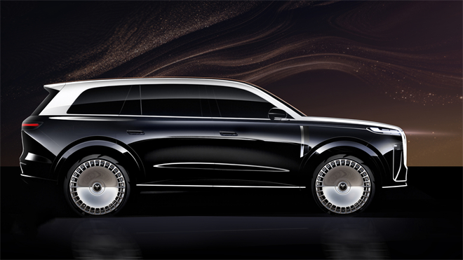 側(cè)面手稿則進(jìn)一步展現(xiàn)了 “極” 的魅力,流暢的腰線從車頭延伸至車尾,如同山巒起伏的輪廓,既勾勒出車身的修長線條,又賦予了車輛強(qiáng)烈的力量感。前輪眉至前門的距離、車頂至車身底部的高度比例,都經(jīng)過精心調(diào)配,使得整車在視覺上更顯沉穩(wěn)大氣,宛如一件移動(dòng)的藝術(shù)品。