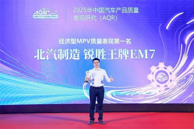 9月25日,在車質網與凱睿賽馳咨詢聯合主辦的“2025年中國汽車產品質量表現研究(AQR)結果發布暨頒獎典禮”上,北汽制造銳勝王牌E-M7憑借出色的產品質量和用戶口碑,一舉奪得2025年經濟型MPV質量表現第一名的桂冠。這一榮譽不僅是對北汽制造產品品質的認可,更是對其始終堅持“質量本位”理念的最好印證。