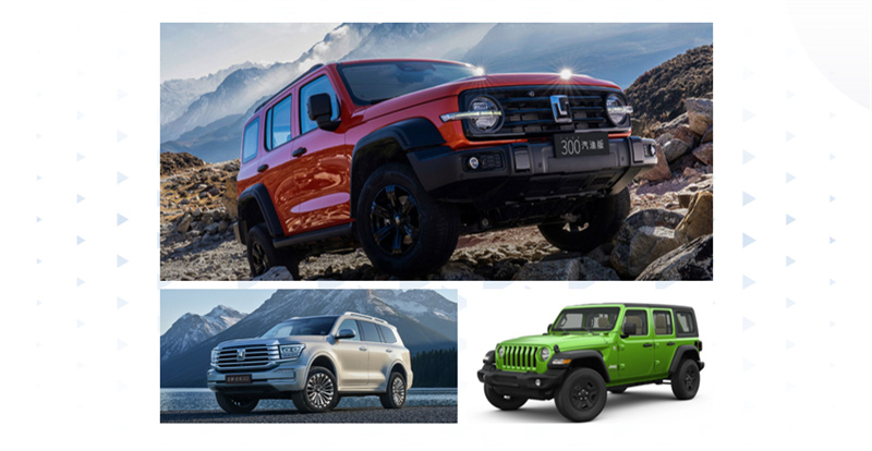 代表車型:坦克300、坦克500、Jeep牧馬人。