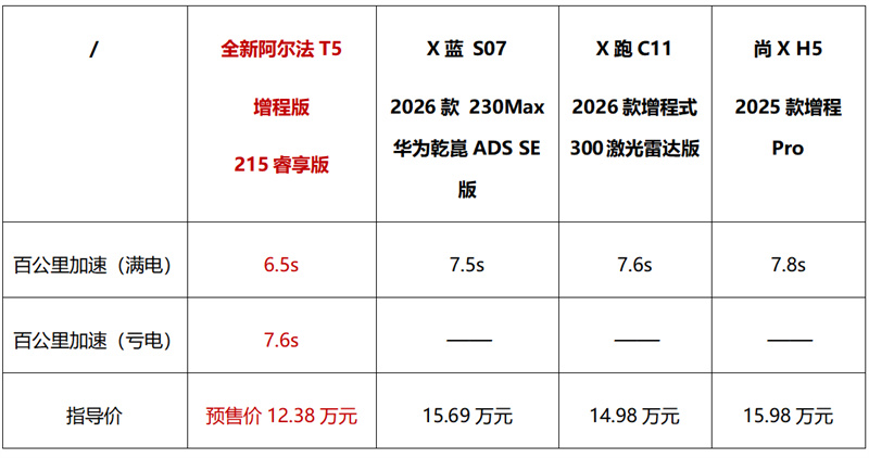 在家庭用戶關心的動力方面,全新阿爾法T5增程版峰值功率200kW,峰值扭矩365N·m,滿電零百加速僅6.5秒,即使在虧電狀態下零百加速仍能保持7.6秒優異成績,爬坡過坎、高速超車全部游刃有余。無論滿電饋電,全新阿爾法T5性能隨時在線,“快人一步”盡享百萬級別澎湃駕控。